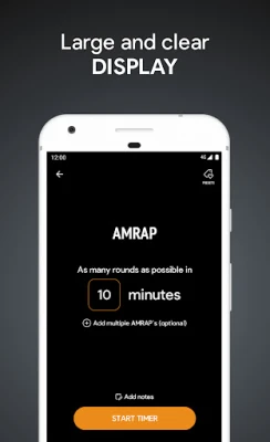 AMRAP Timer - WOD Timer for "As many rounds as possible" type of functional fitness and cross training workouts. In AMRAP timer you can set a time that will count down. Try to do as many reps or rounds in the set time as you can! AMRAP timer also runs in the background.