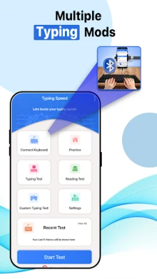 Typing test giving you the opportunity to connect your keyboard with Bluetooth or OTG to check your typing speed.